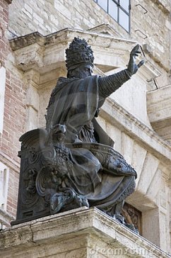 Estatua del papa Julio III, en Perugia. A sus pies se produce la reconciliación de Donatello y Miriam