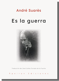 Para finalizar, señalaré el magnífico trabajo de traducción realizado por el escritor vallisoletano José Carlos Turrado de la Fuente, que ha sabido poner en juego su conocimiento y talento literario para acercarnos, con la riqueza, plasticidad y fuerza expresiva necesarias, este amargo y complejo texto de André Suarès, donde la invectiva bélica más punzante se conjuga con el imaginativo vuelo de la alegoría. Es la guerra viene así a sumarse, con todos los honores, a la reciente y exquisita colección creada por Ápeiron Ediciones, «Grodek», que al amparo del famoso poema de Trakl está recuperando para nuestra lengua valiosos testimonios líricos (Ricarda Huch, Richard Schaukal) de la primera mitad del siglo XX: una época especialmente convulsa y significativa de la historia europea moderna.